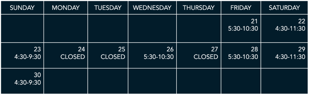 Open November 21 through December 28, 2025